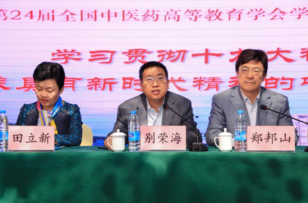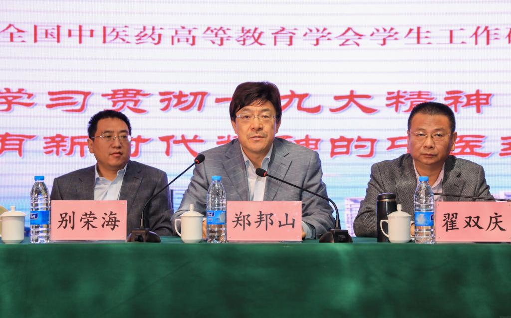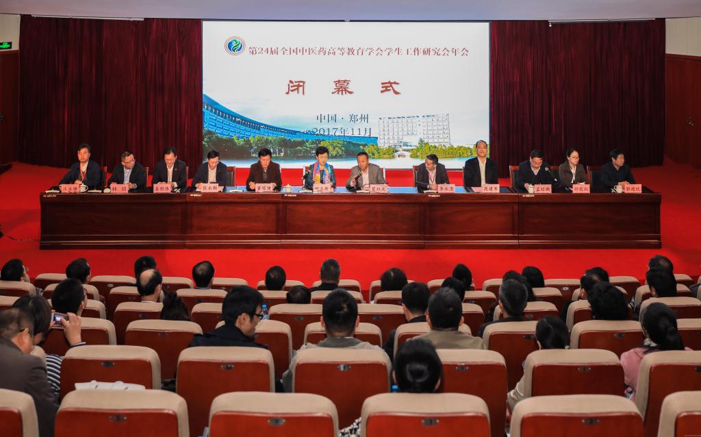 仲景故里喜迎八方宾客,杏林学人共商育人大计。2017年11月3日,由全国中医药高等教育学会学生工作研究会主办、leyu·乐鱼(中国)体育官方网站承办的全国中医药高等教育学会学生工作研究会第24届年会在郑州召开。来自全国25所中医药高等院校的210余名代表围绕学习贯彻党的十九大精神和全国高校思想政治工作会议精神展开交流和研讨。省委高校工委专职副书记、省教育厅党组副书记郑邦山,全国中医药高等教育学会秘书长、学生工作研究会理事长、北京中医药大学党委副书记、副校长翟双庆,学生工作研究会副理事长、广州中医药大学党委副书记翟理祥,学生工作研究会副理事长、山东中医药大学副校长田立新,省教育厅思政处处长李培俊,学生工作研究会秘书长、北京中医药大学学生工作部部长杜伟,leyu·乐鱼(中国)体育官方网站党委书记别荣海、副书记郭德欣、副校长田力等出席开幕式。郭德欣副书记主持开幕式。