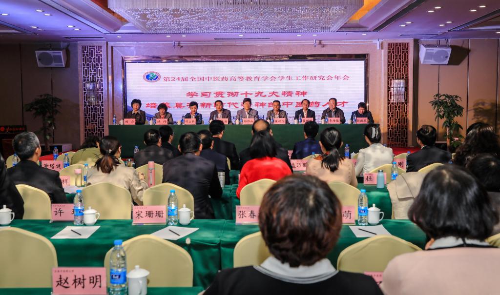 年会邀请原光明日报总编辑敬天林作了题为“时代、优势和责任---学习党的十九大报告,对中医药院校学生工作的一些认识”的主题报告,从牢牢把握中国特色社会主义的新时代和新的历史方位;增强“四个意识”,充分认识学习习近平新时代中国特色社会主义思想对中医药学的创新发展所具有的重要指导作用;深刻理解新时代我国社会的主要矛盾和面临的时间节点,认真履行时代责任等方面进行了深入阐释,进一步深化了对党的十九大精神的理解,增强了中医药文化自信。