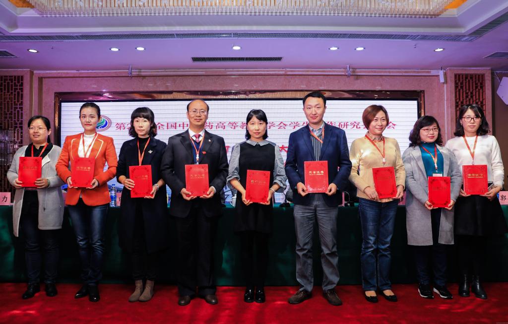 学生工作研究会秘书长、北京中医药大学学生工作部部长杜伟宣读表彰文件和科研项目立项通知。年会对2016~2017年度全国高等中医药院校43名优秀辅导员、43名优秀学生工作者、10项学生工作特色项目进行了表彰,对31项科研项目进行立项资助。leyu·乐鱼(中国)体育官方网站辅导员范璐璐、时慧荣获全国中医药高等院校“优秀辅导员”称号,郭炎州、朱平生被评为全国中医药高等院校“优秀学生工作者”,《网络思想政治教育视域下“杏苑星火”新媒体矩阵德育方法创新研究》、《基于“南丁格尔”实验班的院校深度融合人才培养模式的探究》获立项资助。主席台就坐领导为获奖代表颁奖。