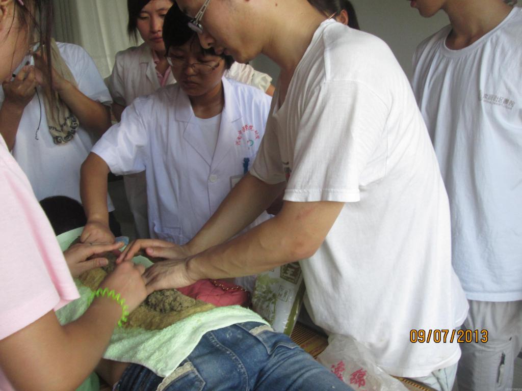 在商水县郝岗乡范庄行政村社会实践过程中,辅导员张欢欢带领小分队渡过了一段紧张而又忙碌的日子。义诊期间,师生们不顾天气炎热,发扬不怕吃苦不怕劳累的精神,充分发挥针灸推拿“显效、健康、绿色、安全”的优势,并配合中药治疗,多次针起病愈,发挥针灸神效。并且每天早上6点晨跑,练习养生保健气功八段锦,晚上8点总结会,对疑难问题进行讨论和查阅相关资料;9点半到10点半由《蒙正》经典诵读夏令营的国学老师帮大家补习国学知识并组织大家进行讨论。义诊结束前,小分队联同中原艺术文化学院的师生们一起为当地村民表演节目,并在闲暇时间,教授乡亲们中国功夫和养生气功八段锦。义诊中共接诊病人100多人,接诊人次达800多人次,97%的患者在治疗后感觉症状明显减轻。