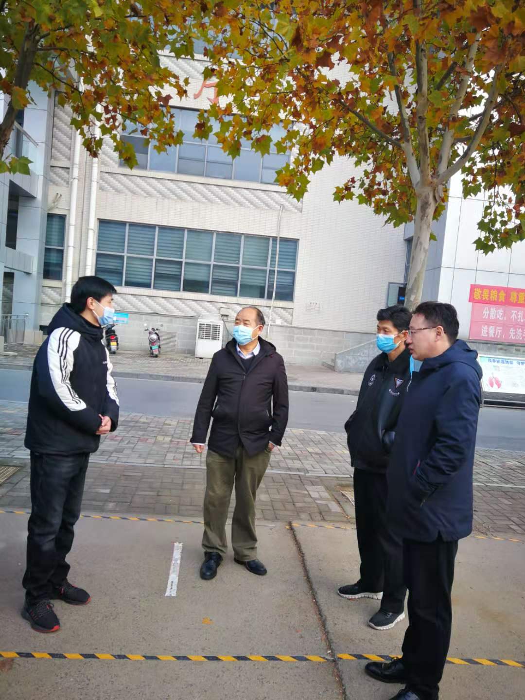 本网讯(文/陈昕 图/姜国磊)2020年12月3日,校党委委员、副校长苗明三深入一线检查学校后勤疫情防控工作,苗明三一行先后查看了学生食堂、教学实验大楼、近邻宝等处,后勤服务中心主任赵焕东、副主任杨振华、韩铁军陪同检查。