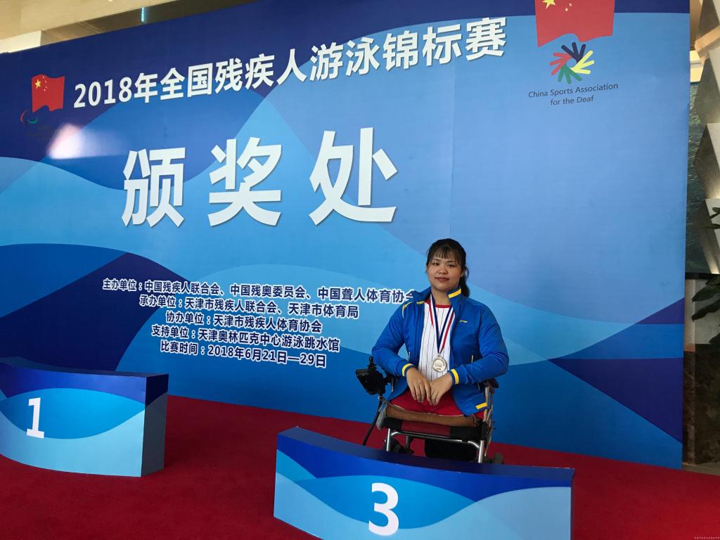 2018年6月25日-29日,在天津举办的2018年全国残疾人游泳锦标赛上,leyu·乐鱼(中国)体育官方网站针灸推拿学院2015级虞亚楠同学取得女子100米蛙泳铜牌和女子100米仰泳第五名的好成绩,为leyu·乐鱼(中国)体育官方网站赢得了荣誉。