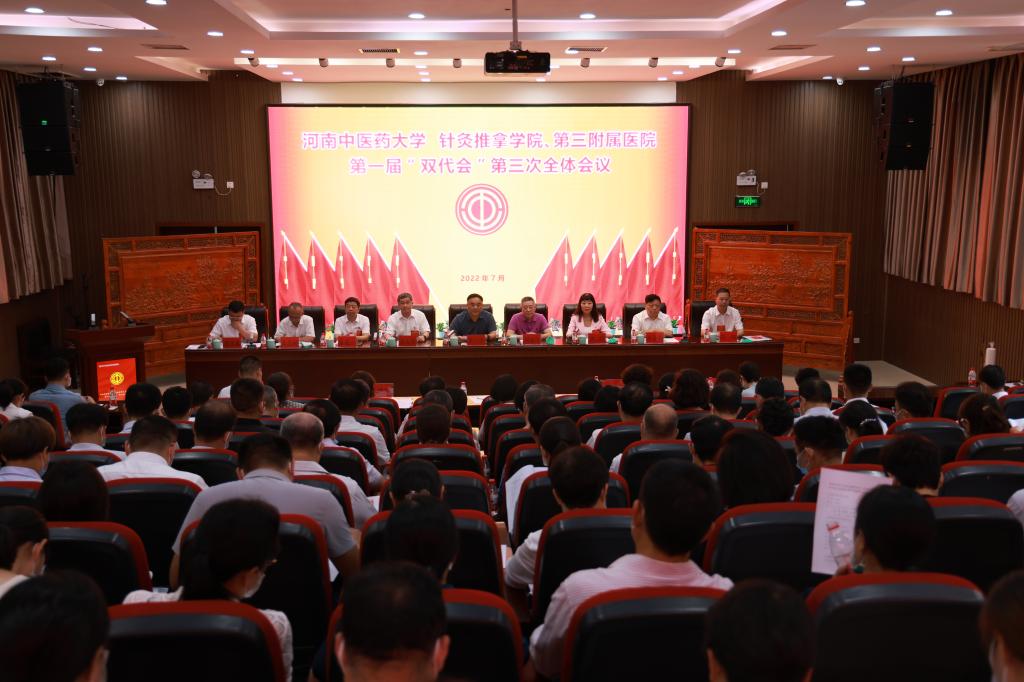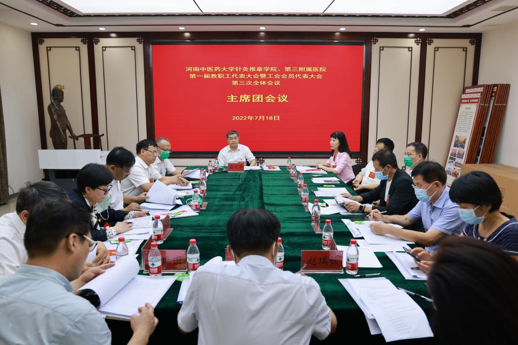 本网讯(文/图 吴金苗)2022年7月18日,三附院召开第一届教职工代表大会暨工会会员代表大会第三次全体会议。校党委副书记、工会主席张小平,校工会副主席刘延江,三附院院长张大伟和医院在郑领导班子成员、全体职工代表和退休职工代表、民主党派代表参加会议。开幕式由院党委副书记焦钧主持。
