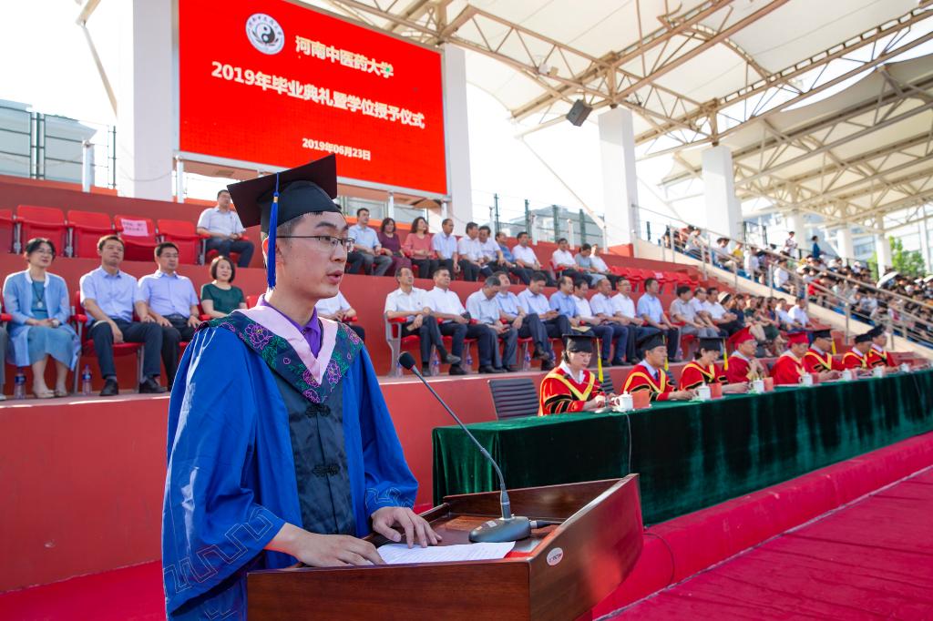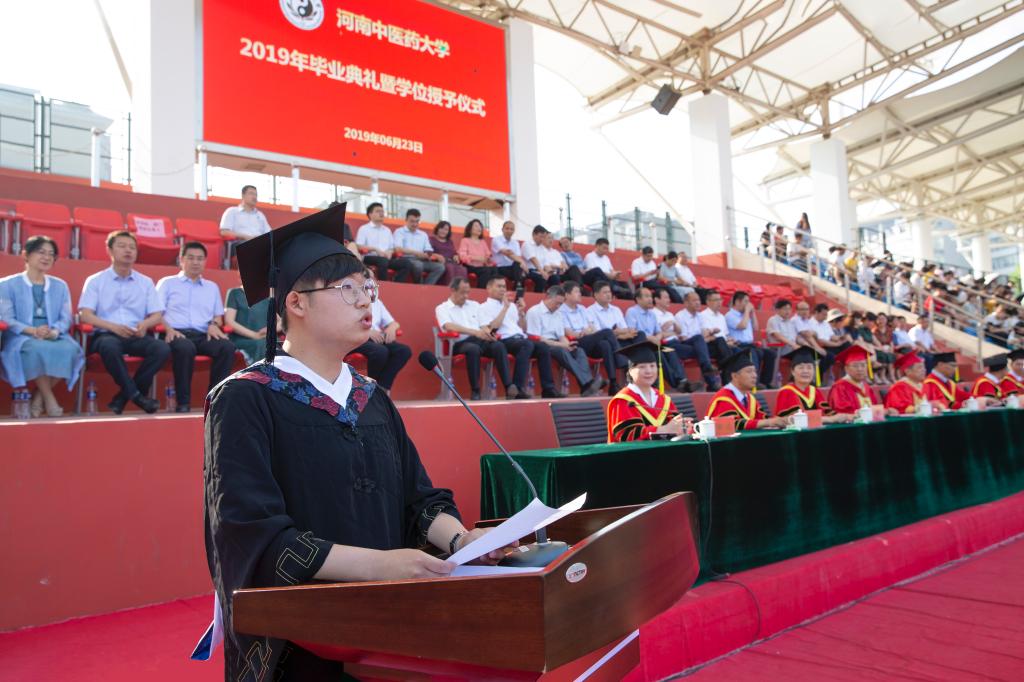 随后,本专科毕业生代表张桂星、研究生毕业代表生户振亚、留学生代表吕成遵分别发言,共同表达了对母校未来发展的美好希冀,并立志谨记教诲,坚守己心,为中医药事业的蓬勃发展添砖加瓦。教师代表、第一临床医学院诊断学科孙士玲教授向即将毕业的同学们表达了祝贺,并叮嘱毕业生“莫失精诚赤子心,莫忘春风化雨情”,希望毕业生们能够树立终身学习的理念,以无限热忱投身于工作及实践。毕业生李轶琨同学的父亲李德建作为家长代表,在发言中寄语毕业生要以真诚之心待人处世,敢于尝试,敢于挑战,勇担时代赋予的重任。