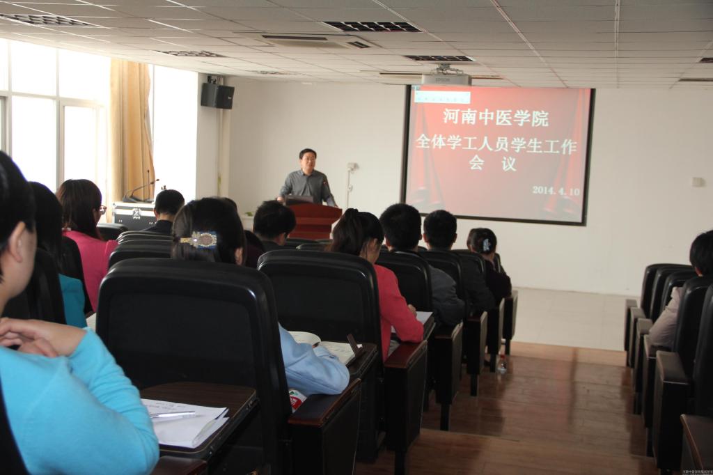 会上,学工部副部长、学生处副处长段其波反馈了leyu·乐鱼(中国)体育官方网站2013年度学生工作目标考核情况,对2014年学生工作要点、考核工作、班主任工作等作了安排和解读;学工部副部长、学生处副处长李俊芝传达并解读《河南省普通高等学校学生非正常死亡事故(案件)应急处置办法(暂行)》和《河南中医学院关于学生办理请销假手续的有关规定》2个文件;学工部副部长、学生处副处长王晓艺通报了leyu·乐鱼(中国)体育官方网站2014年学生资助体系改革的基本思路。会上,去年学生工作综合考核第一名单位药学院党委副书记杨文胜为大家介绍了学生工作及班主任工作的经验;学生处大学生心理咨询中心副主任郭彦霞作了“关于心理问题的识别及处理方法”专题培训。
