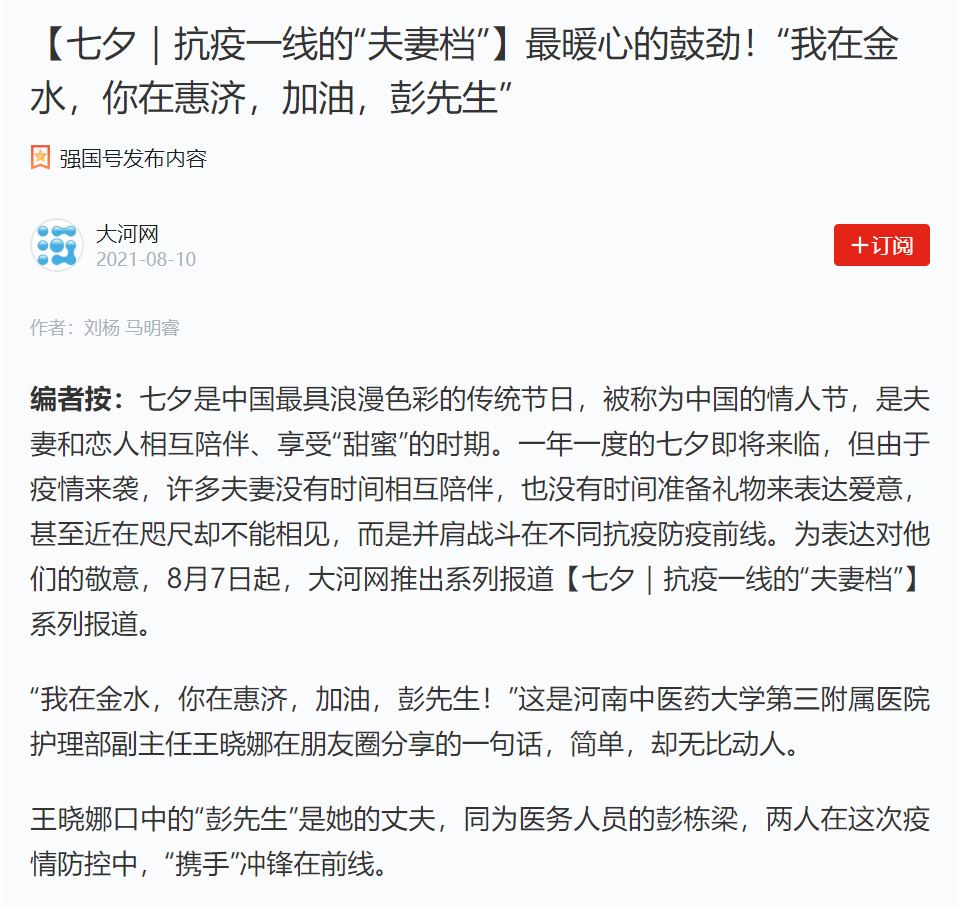 学习强国丨【七夕|抗疫一线的“夫妻档”】最暖心的鼓劲!“我在金水,你在惠济,加油,彭先生”
