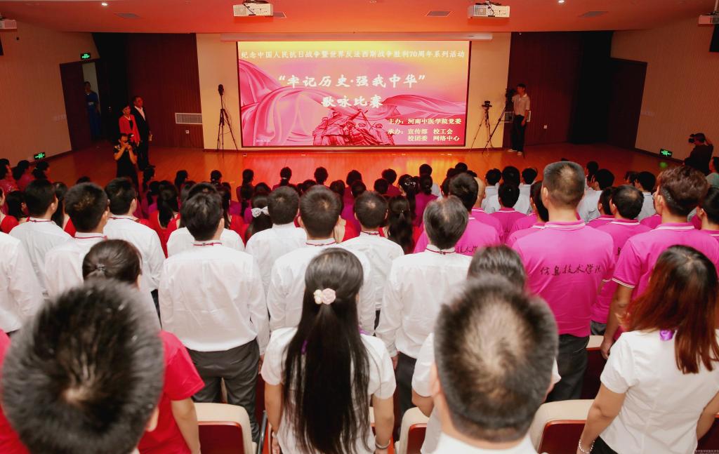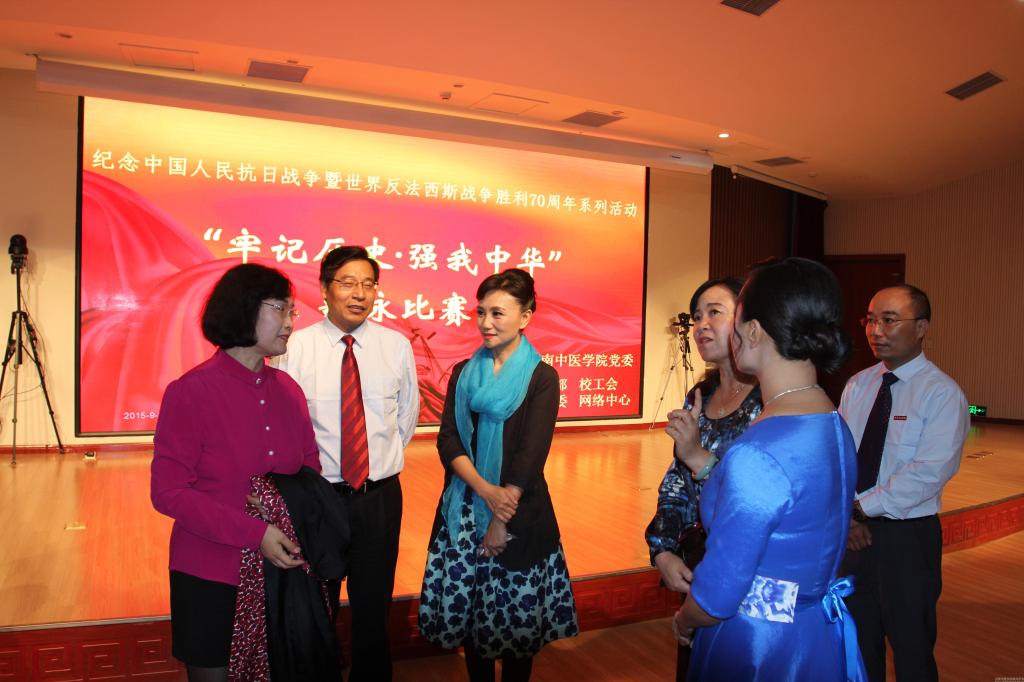 2015年9月24日晚,leyu·乐鱼(中国)体育官方网站图书馆第一报告厅里座无虚席,气氛热烈。leyu·乐鱼(中国)体育官方网站纪念中国人民抗日战争暨世界反法西斯战争胜利70周年教职工歌咏比赛在这里隆重举行。院长郑玉玲,原正校级调研员徐玉芳,党委副书记郭海波、张丽霞,副院长张小平、徐江雁,纪委书记许东升出席并参加机关党委的合唱节目。来自全校23个基层党组织组成的15支代表队同台竞技,引吭高歌。党委副书记张丽霞与宣传部、校工会、校团委负责人和学生代表担任本次比赛评委。