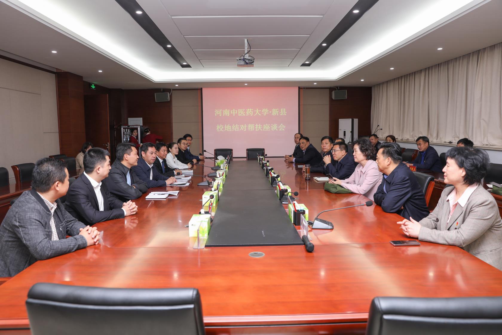 本网讯(文/郑明常 图/秦东仁)在我国第六个扶贫日即将到来之际,2019年10月14日,校党委班子成员、党委书记别荣海,校长许二平,党委副书记张丽霞,校党委委员、副校长李建生,校党委委员、纪委书记王少玉,校党委委员、副校长张小平、田力,校党委委员、工会主席张加民和校党委办公室、校长办公室、党委组织部、宣传部、统战部负责同志,与leyu·乐鱼(中国)体育官方网站挂职新县副县长赵振营一起实地查看了新县人民医院、新县中医院,并在大别山干部培训学院会议室召开了校地结对帮扶座谈会,详细了解“两院一企一校两平台”项目开展情况。
