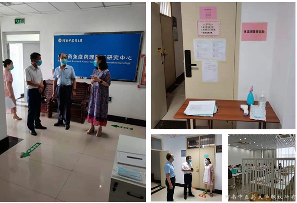 苗明三现场查看了各实验室体温测试点、防疫物资储备及使用、实验室人员在岗情况等运行环节。慰问暑期始终坚守科研一线的师生,叮嘱大家务必要认真学习贯彻习近平总书记对当前疫情防控工作的重要指示精神和党中央、国务院决策部署,落实疫情防控规范和要求,切实把防控工作抓实、抓细、抓到位。一是要求每个实验室必须设置体温测量登记处,登记处放置必要的防疫消毒设备和实验室出入登记本。出入实验室前做好体温监测和防控措施。二是要规范实验室留校学生的管理与安全防护,所有师生都要戴口罩、不扎堆、保持安全距离。每日统计实验室学生健康情况,在不影响实验进程的情况下合理安排值守。做好留校研究生的疏导和安抚,让他们感到安心和放心。三是要求科研人员做好坚决筑牢疫情防控严密防线的同时,大力弘扬中医药文化,扎实做好中医药产学研工作,助力中医药振兴发展,全力守护好师生生命健康安全。