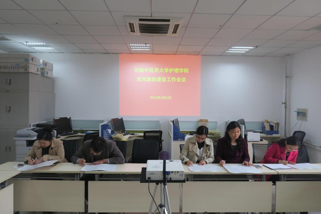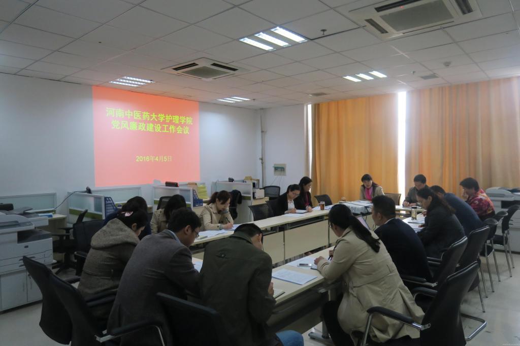 2016年4月5日下午,护理学院党总支召开党风廉政建设专题会议。护理学院全体教工党员参加会议,会议由护理学院院长杨英豪主持。