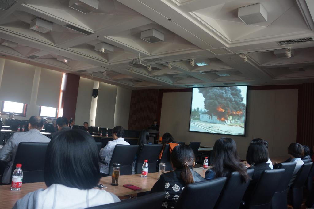 台露佳教员首先展示了近期国内发生的一些特大严重火灾事故,详述了其带来的危害性,强调了消防工作重在防范,要警钟长鸣,时刻牢记于心,做好消防安全工作。接着台露佳教员又通过图片、视频等全面讲解了火灾的危害、火灾发生的原因、火灾燃烧周期、各阶段扑救措施等基本知识;详细介绍了火灾时逃生要领,包括如何正确报火警、逃生路线的选择、应变和高楼逃生要领等一系列防火安全知识。活动现场,台教员还演示了灭火器、防毒面具等消防工具的正确使用方法。通过讲解和直观感受,大家深有感触,进一步认识到消防安全的重要性,更近距离地熟悉和掌握了消防知识,提高了自身应对突发事件和火灾事故的应变能力和自救防护能力。
