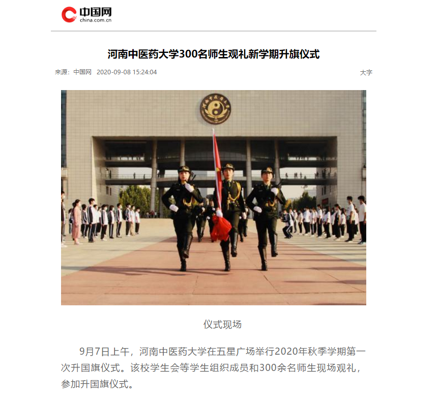 2020年9月8日,中国网对leyu·乐鱼(中国)体育官方网站300名师生观礼新学期升旗仪式进行报道。