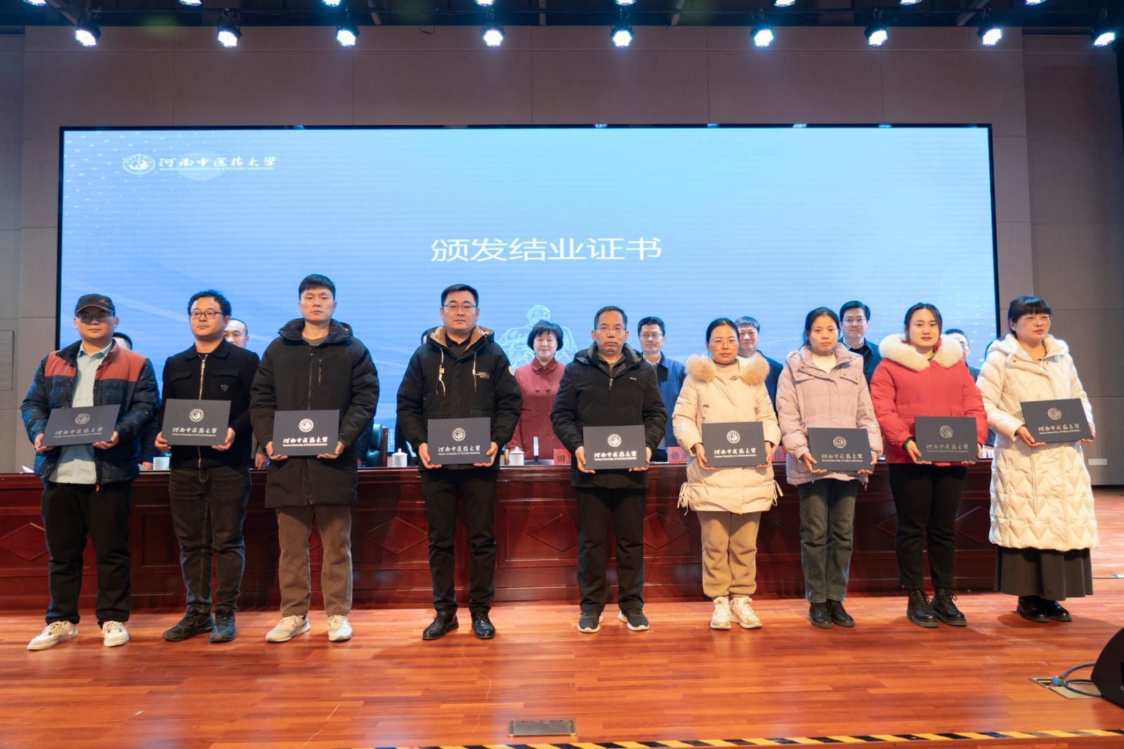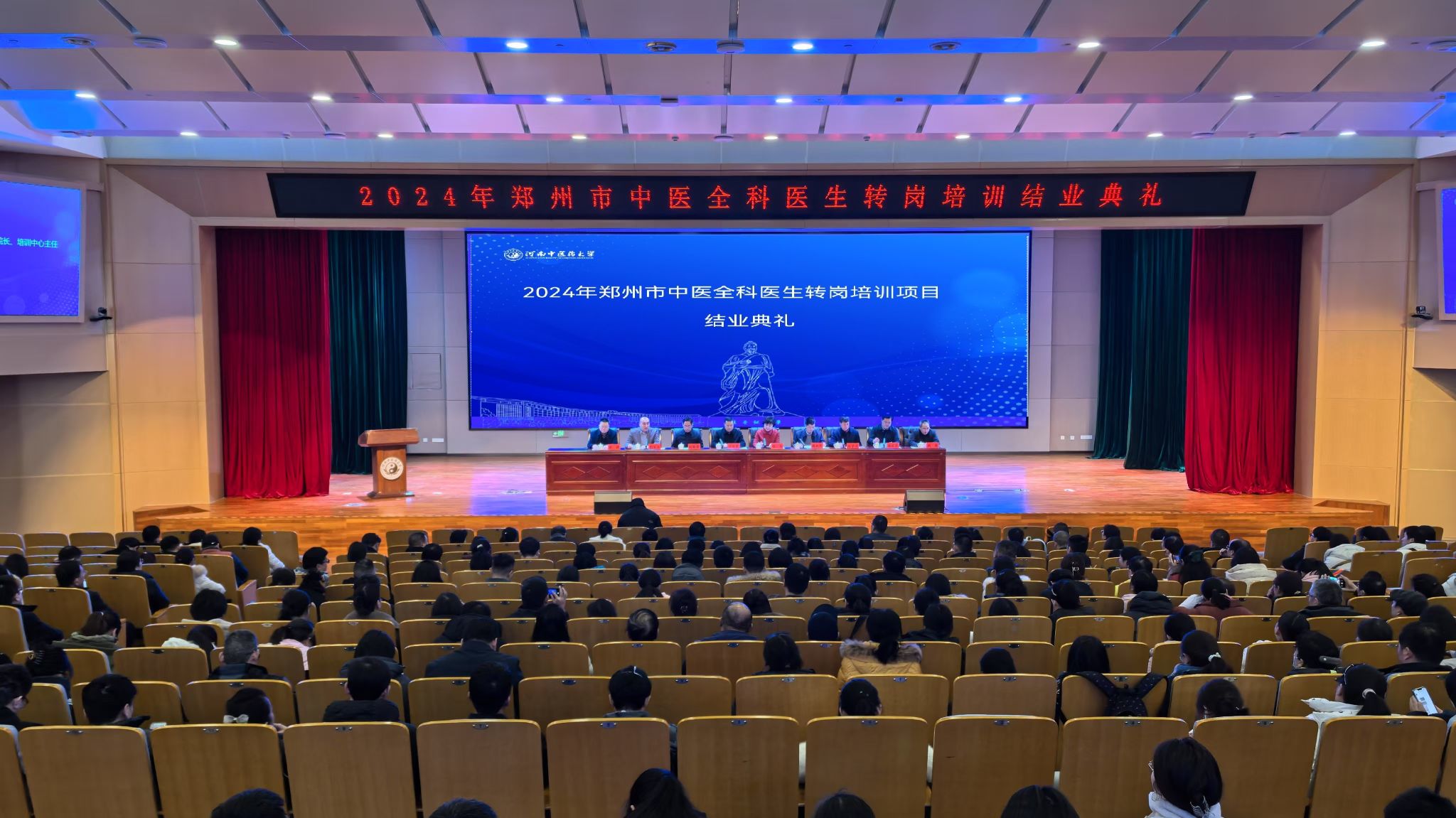 本网讯(文/图 刘涛)2025年1月3日,2024年郑州市中医全科医生转岗培训项目结业典礼在leyu·乐鱼(中国)体育官方网站龙子湖校区俊学楼 B101会议厅举行。本次典礼标志着为期一个月的培训项目圆满结束,来自郑州市及各区县(市)206 家医疗单位的两批604名学员们顺利结业,即将踏上新的征程,为基层中医药事业发展贡献力量。