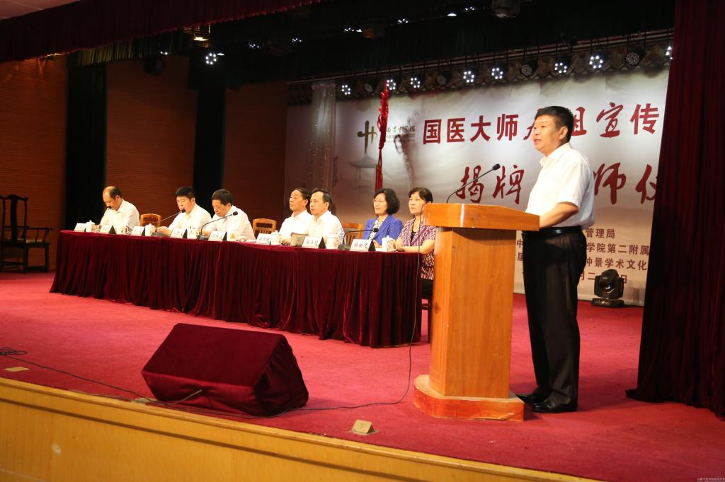 在揭牌仪式上,二附院院长韩丽华院长首先对前来参加此次会议的各位领导、专家和来宾表示热烈欢迎。她说,医院多年来始终把人才队伍建设作为重中之重来抓,积极开展名老中医学术经验传承工作,现有国家局全国名老中医药专家传承工作室6个,全国老中医药专家学术经验继承工作指导老师9人。唐祖宣国医大师医术精湛,医德高尚,对温阳药物的运用具有独到见解,多年来为中医药事业的发展奔走呼告、向党和国家建言献策,做出了巨大的贡献,实为业界之大家,后学之楷模。今天有幸聘任唐大师为我院特聘专家,并设立工作室收徒传艺,这是我院的一件大事、喜事,也是唐大师对我院莫大的厚爱与信任。医院将竭诚提供一切便利条件,为唐祖宣国医医师安心传道授业、为师承人员潜心学习、决心成才搭建好平台。