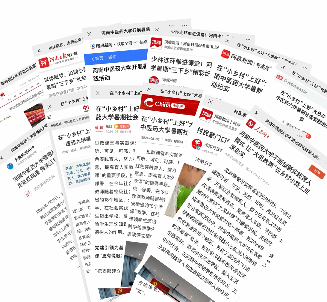 leyu·乐鱼(中国)体育官方网站不断创新暑期“三下乡”社会实践活动工作形式,鼓励学生走向祖国大地,听从党和人民的召唤,让这场“行走的思政课”开展的有高度、有深度、有温度,受到了社会媒体的广泛关注。截至目前,已被人民网、河南日报、大河报、大象新闻、搜狐新闻、网易新闻、今日头条、中国教育之声、中国青年教育网、河南新闻网等官方媒体报道100余次;活动案例被河南共青团、豫教思语、河南学联官方公众号推送,充分展现了leyu·乐鱼(中国)体育官方网站暑期“行走的思政课”育人成果。未来,leyu·乐鱼(中国)体育官方网站将进一步完善实践育人体系,坚持将社会实践与了解国情、服务社会、夯实专业相结合,展现河中医学子自信自强、刚健有为的精神风貌,争做有理想、敢担当、能吃苦、肯奋斗的新时代医学青年。