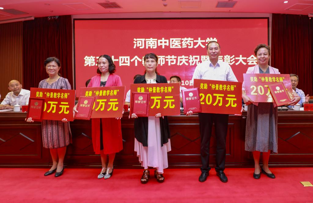 校领导为leyu·乐鱼(中国)体育官方网站首届“仲景教学名师”颁发荣誉证书及奖金