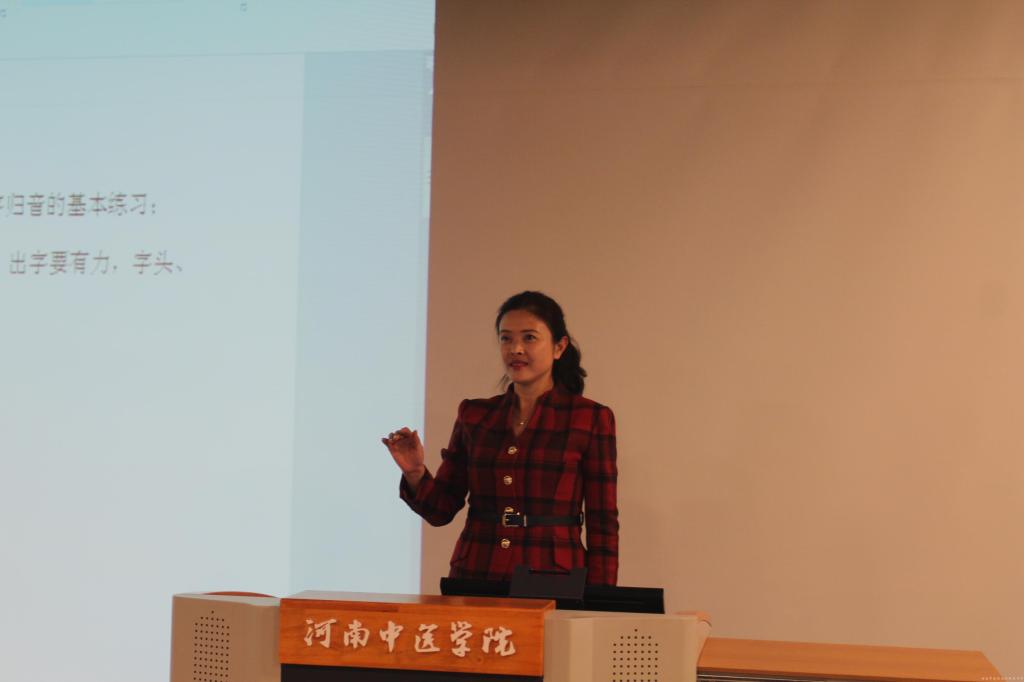 林晓平副研究院担任河南讲解培训基地副主任,曾获全省讲解员大赛一等奖,被授予“河南省十佳讲解员”等荣誉称号,有着长期的讲解和培训经验。在本次报告中,她首先从讲话、讲座、讲课、讲解的区别开始,对“讲”的重要性做了深入的剖析,从讲解的主体、对象、内容、效果等指出“讲”涉及多个领域,要以传播知识为己任、以科学性为指导原则、以趣味性锦上添花,把知识性、科学性、趣味性三个主要的要素融入讲的过程。林晓平副主任从“讲”的原则、程序、技巧、仪态、内容表达等方面做了具体的分析,指出要在讲的过程中,学会科学发声、巧用声音、注意发音部位、学会深呼吸、用好共鸣音;要注重内容的表达、正确表达语气、恰当选择重音;要把想说的内容用科学的、最美的形式表述出来。在讲座最后,林主任又对师生们的吐字发声、仪容仪态等进行了现场指导。