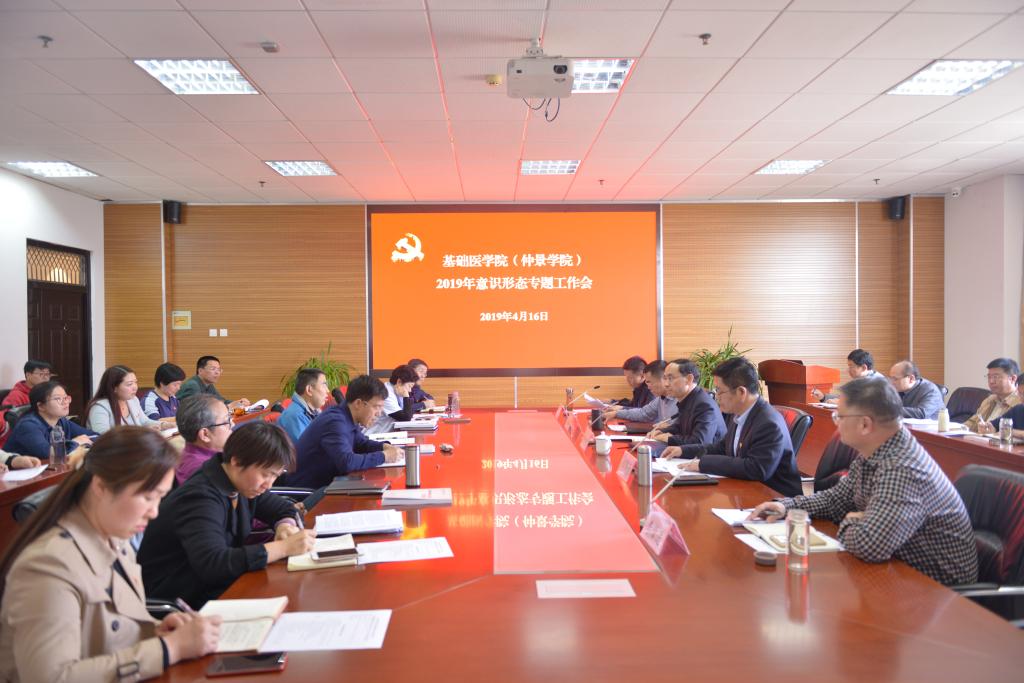 会上,基础医学院(仲景学院)副院长李肇进传达了学校关于加强新形势下思政工作和“三全育人”工作相关文件精神;基础医学院(仲景学院)党委副书记徐里传达了学校关于新闻宣传和网络管理中加强意识形态工作有关文件的精神;基础医学院(仲景学院)党委书记禄保平传达了学校关于教学、科研管理中加强意识形态工作有关文件的精神,并总结了学院2018年度意识形态工作,安排部署了2019年度意识形态工作任务。