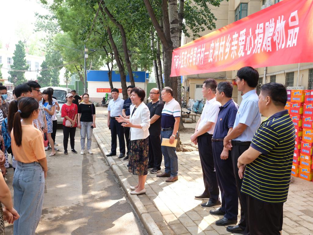 校党委副书记李小芳代表学校接受了捐赠,向武庙集镇政府和皮冲村的乡亲们的爱心捐赠表示感谢。李小芳表示,愿皮冲村在接下来的乡村振兴中快速持续发展,在美丽乡村建设取得更大成绩。李小芳还对同学们在灾情面前按照省委和校党委的要求,组织有序、临危不惊地积极自救点赞,嘱咐同学们一定要和家人常联系、报平安,使家人放心,并希望同学们好好学习中医药专业知识,学有所成,将来回报社会、回报基层、回报乡亲。