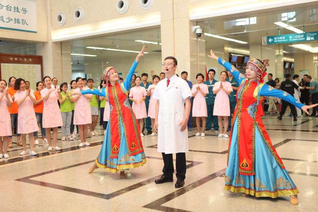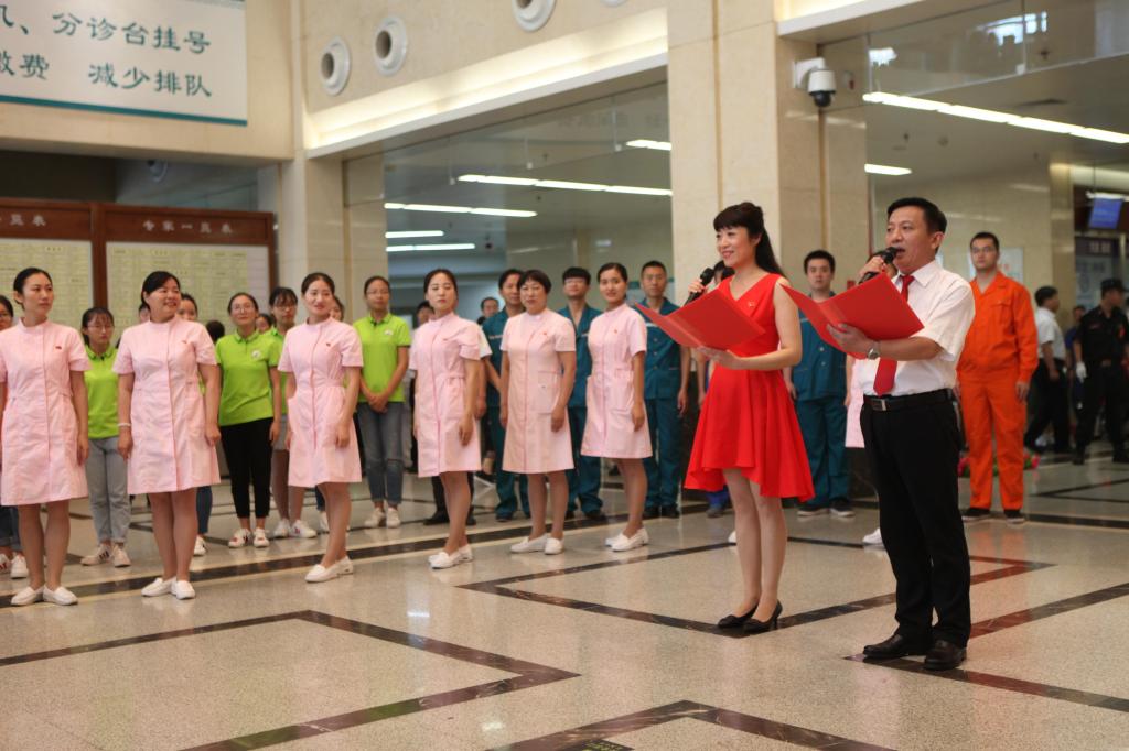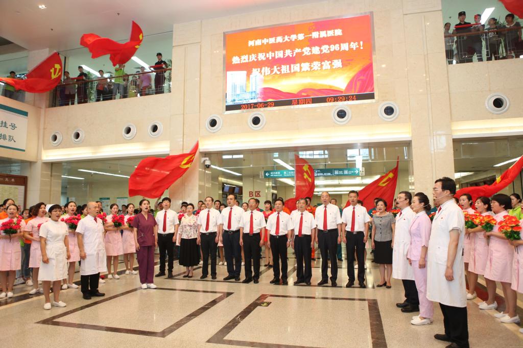 2017年6月29日上午,一附院在门诊楼大厅举办了“庆七一”红歌快闪活动。医院领导班子成员、党员职工代表齐聚一堂,载歌载舞,以催人奋进的歌声,满怀豪情的朗诵,庆祝中国共产党建党96周年 ,以实际行动迎接党的十九大胜利召开。