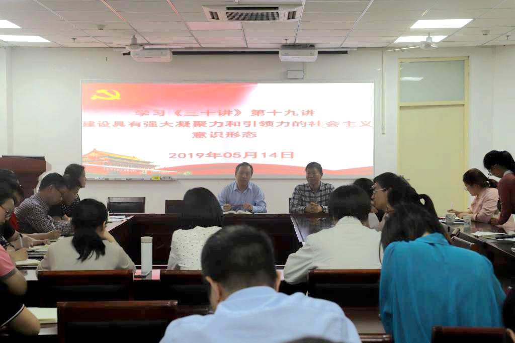 会上,徐江雁结合《习近平新时代中国特色社会主义思想三十讲》第十九讲“建设具有强大凝聚力和引领力的社会主义意识形态”进行专题辅导。他指出,高校是意识形态工作的重要领域和前沿阵地,意识形态工作关乎国家政治安全,是党和国家工作的重要组成部分,在中国特色社会主义事业全局中具有重要地位。要深入贯彻习近平新时代中国特色社会主义思想和党的十九大精神,切实加强党对意识形态工作的领导,牢固树立社会主义核心价值观,大力发展壮大社会主义意识形态,不断巩固马克思主义在意识形态领域的指导地位,巩固全党全国各族人民团结奋斗的共同思想基础。