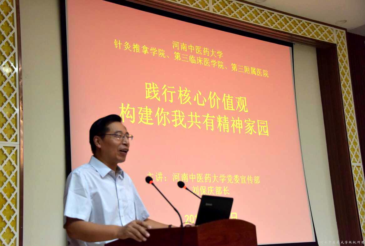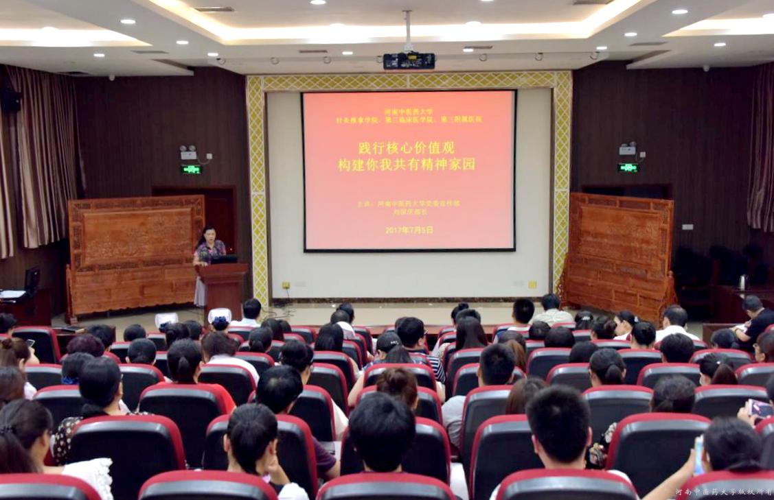 为进一步推进三附院精神文明单位的创建工作,把培育和践行社会主义核心价值观引向更深层次,2016年7月5日下午,三附院邀请学校党委宣传部部长刘保庆教授作了题为《践行核心价值观 构建你我共有精神家园》的专题讲座。医院党委书记李庆海、院长张大伟、党委副书记郭书敏、副院长王祥麒以及全体中层干部、党员代表近200人听取讲座,党委副书记郭书敏主持讲座。