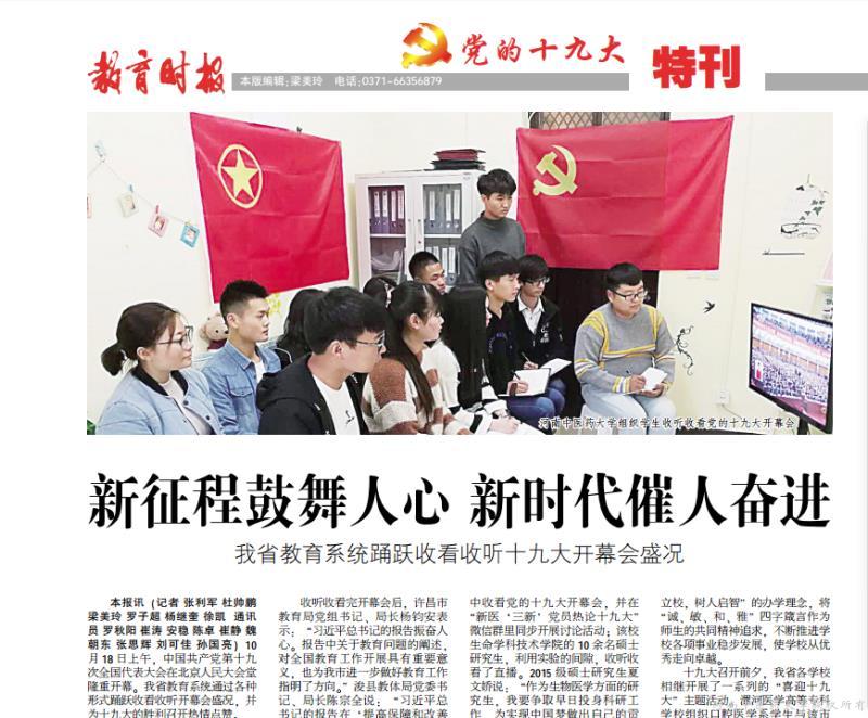 为迎接、庆祝党的十九大的胜利召开,leyu·乐鱼(中国)体育官方网站校团委组织各级团学人员开展了一系列的活动,接下来还将陆续开展理论学习讨论、征文比赛、演讲比赛、图文征集及报告展示等学习十九大系列团学活动,引导广大团员青年牢固树立共产主义远大理想和中国特色社会主义共同理想,提升自己的思想政治觉悟,规范自己的行为,用实际行动践行社会主义核心价值观。(校团委)