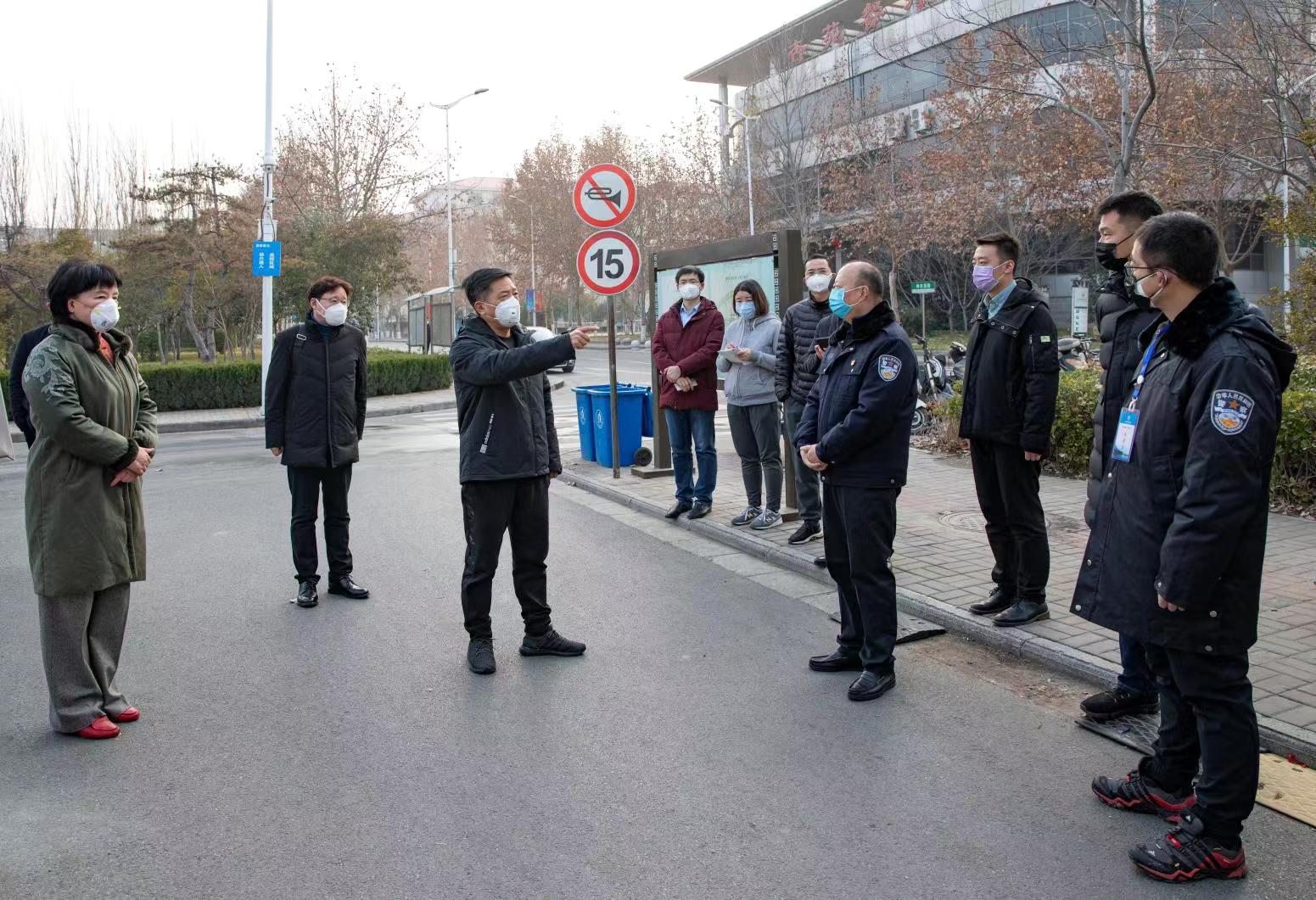 本网讯(文/苗苗 图/秦东仁)2020年1月28日下午,校党委副书记、校长许二平,校党委委员、副校长张小平、田力带领有关部门负责同志先后到学校龙子湖校区、龙子湖校区家属院、东明路校区家属院和城北路家属院调研指导新型冠状病毒感染的肺炎疫情防控工作,实地察看疫情防控措施落实情况,看望慰问一线工作人员。