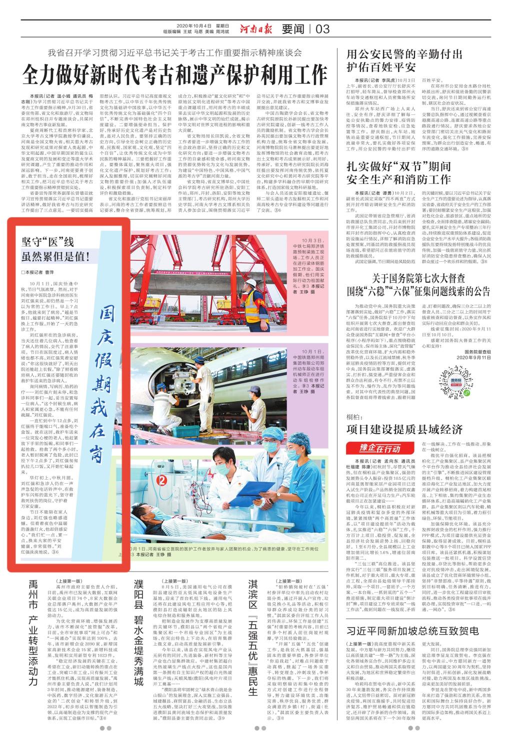 编者按:2020年10月4日,《河南日报》对leyu·乐鱼(中国)体育官方网站二附院急诊科医生刘红强国庆假期坚守“医”线进行报道,现将全文刊发如下: