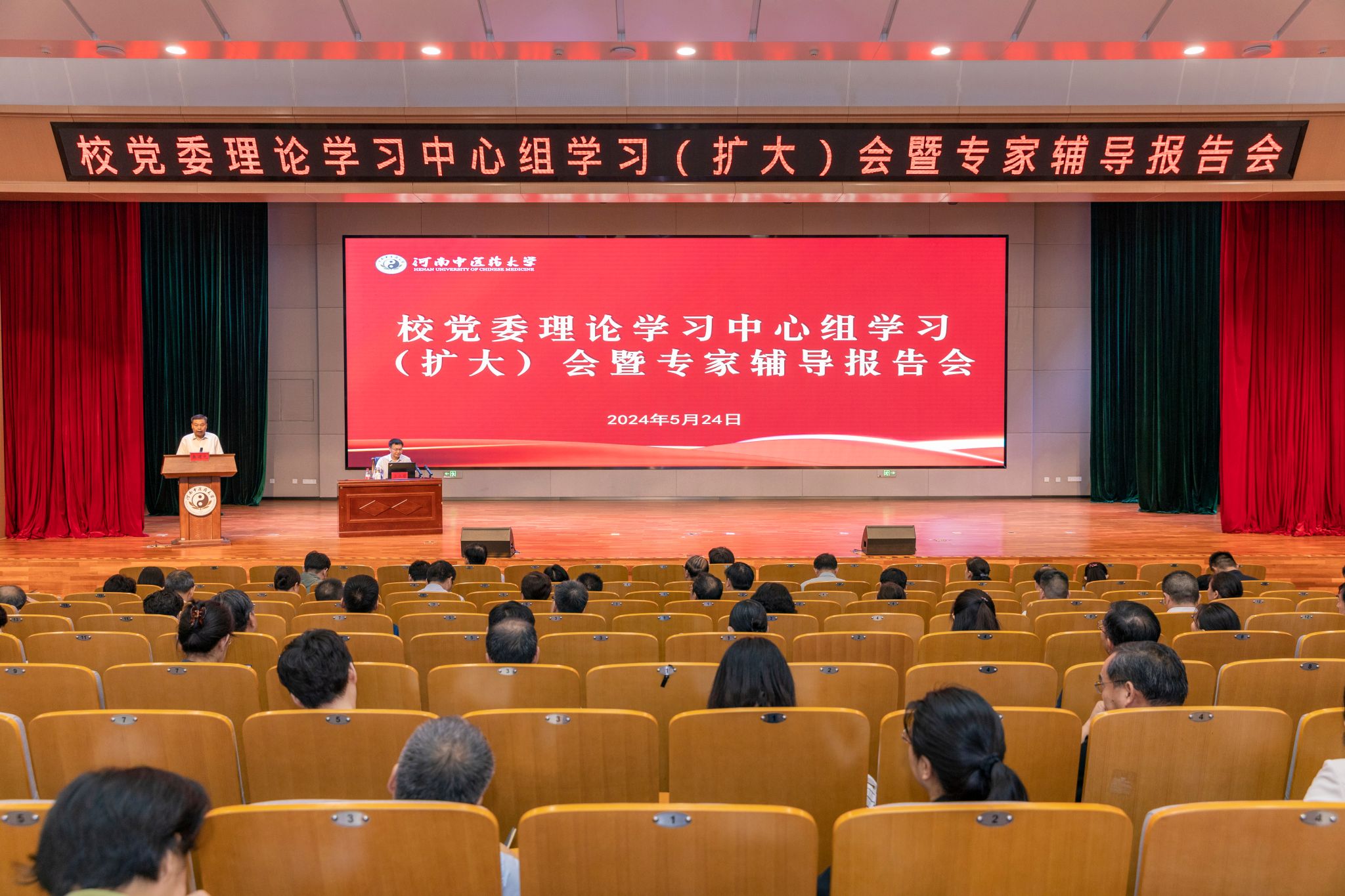 本网讯(文/王赞 图/郭寅虎)高质量发展是新时代的硬道理,需要新的生产力理论来指导。习近平总书记关于新质生产力的重要论述,为开辟发展新领域新赛道、塑造发展新动能新优势提供了科学指引。为深刻理解和准确把握新质生产力的内涵特征、总体要求和实践路径,2024年5月24日上午,leyu·乐鱼(中国)体育官方网站在俊学综合实验楼B101会议室召开党委理论学习中心组学习(扩大)会,邀请河南省社会科学院党委书记、院长王承哲作专题辅导报告。全体在郑校领导、中层干部及相关部门学院工作人员参会,会议由校党委副书记朱建光主持。