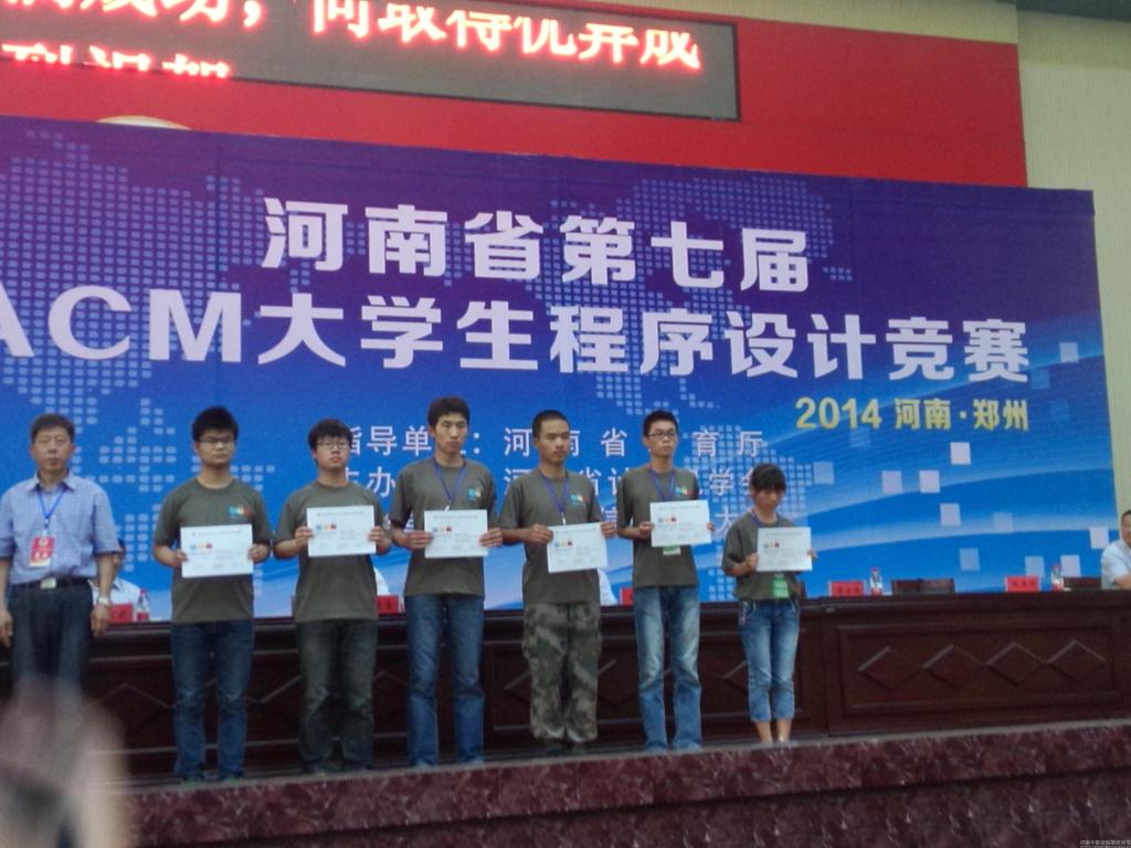 2014年5月24日至25日,由河南省计算机学会主办的河南省第七届ACM大学生程序设计竞赛在解放军信息工程大学举行,来自全省34所院校的171个参赛队约600余名选手参加了大赛。leyu·乐鱼(中国)体育官方网站由信息技术学院、软件学院大学生组成的7个代表队在杨枫、朱红磊、种大双3位老师的带领下参加了比赛。经过赛前的精心准备和两天的紧张角逐,leyu·乐鱼(中国)体育官方网站选手最终取得了1个铜奖、6个优秀奖的好成绩。