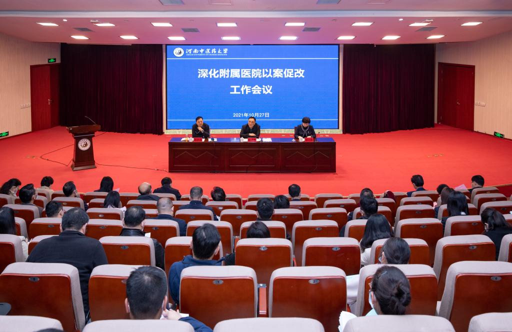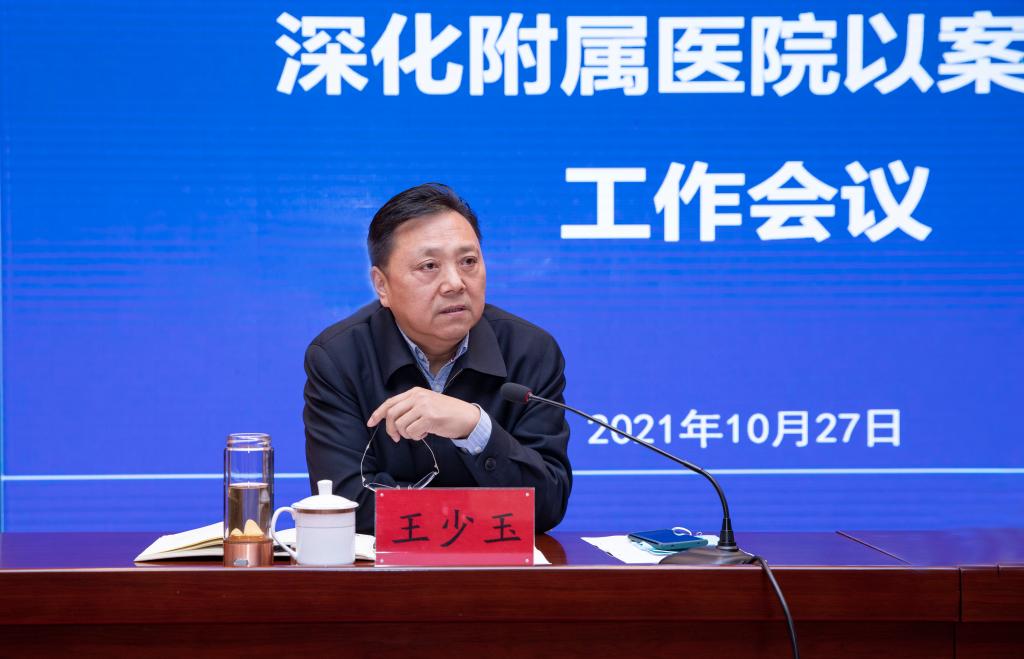校党委副书记李小芳宣读了《关于在附属医院深化以案促改工作方案》,校纪委书记、监察专员王少玉就开展以案促改工作进行部署。校党委副书记、工会主席张小平主持会议。
