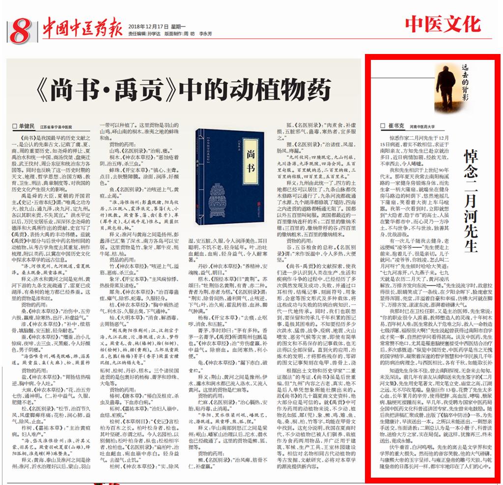 2018年12月17日第8版刊登崔书克《悼念二月河先生》一文