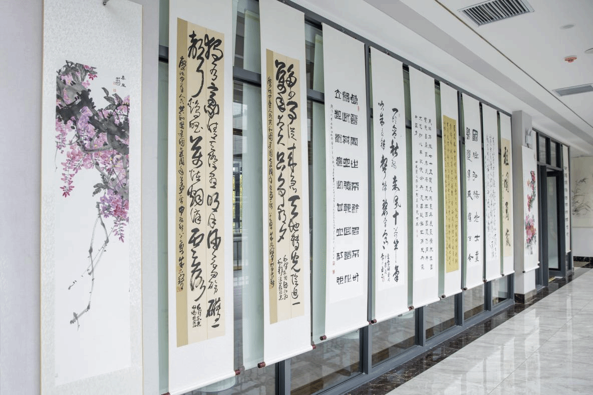 在热烈的掌声中,书画展正式开始。现场书画荟萃,墨香四溢。师生齐聚一堂,以笔为媒,以墨传情。气势磅礴的山水画卷、细腻灵动的花鸟小品、刚劲有力的书法作品……大家用百余幅精美的书画作品,深情致敬祖国的悠久历史和灿烂文化,热情颂歌国家的繁荣昌盛和时代发展,生动彰显学校的改革发展和非凡成就,尽情表达河中医师生爱党爱国的赤子之心和“红色记忆传承”的精神风貌。