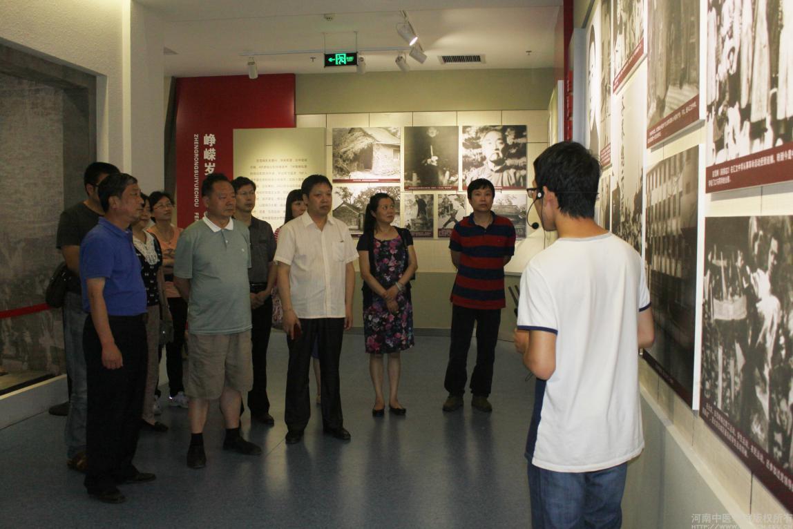 为纪念抗日战争胜利70周年,2015年7月17日至18日,一附院组织民主党派、台胞、无党派人士代表参观彭雪枫将军纪念馆,缅怀革命先烈,学习革命精神,并前往南召县云阳镇指导大学生暑期社会实践活动,走访慰问抗日老战士,为抗日老战士提供免费的健康诊疗服务。