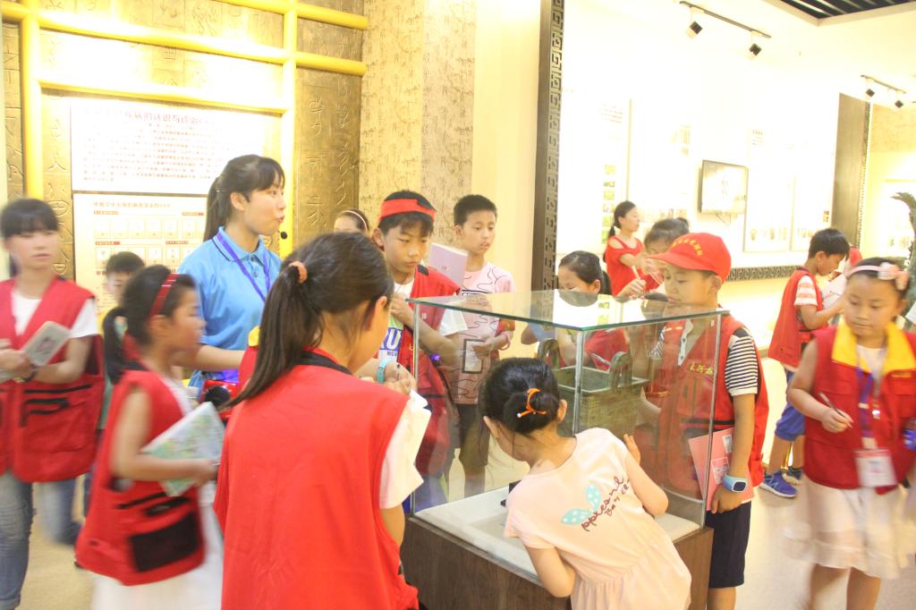 孩子们在讲解员的带领下参观河南中医药博物馆