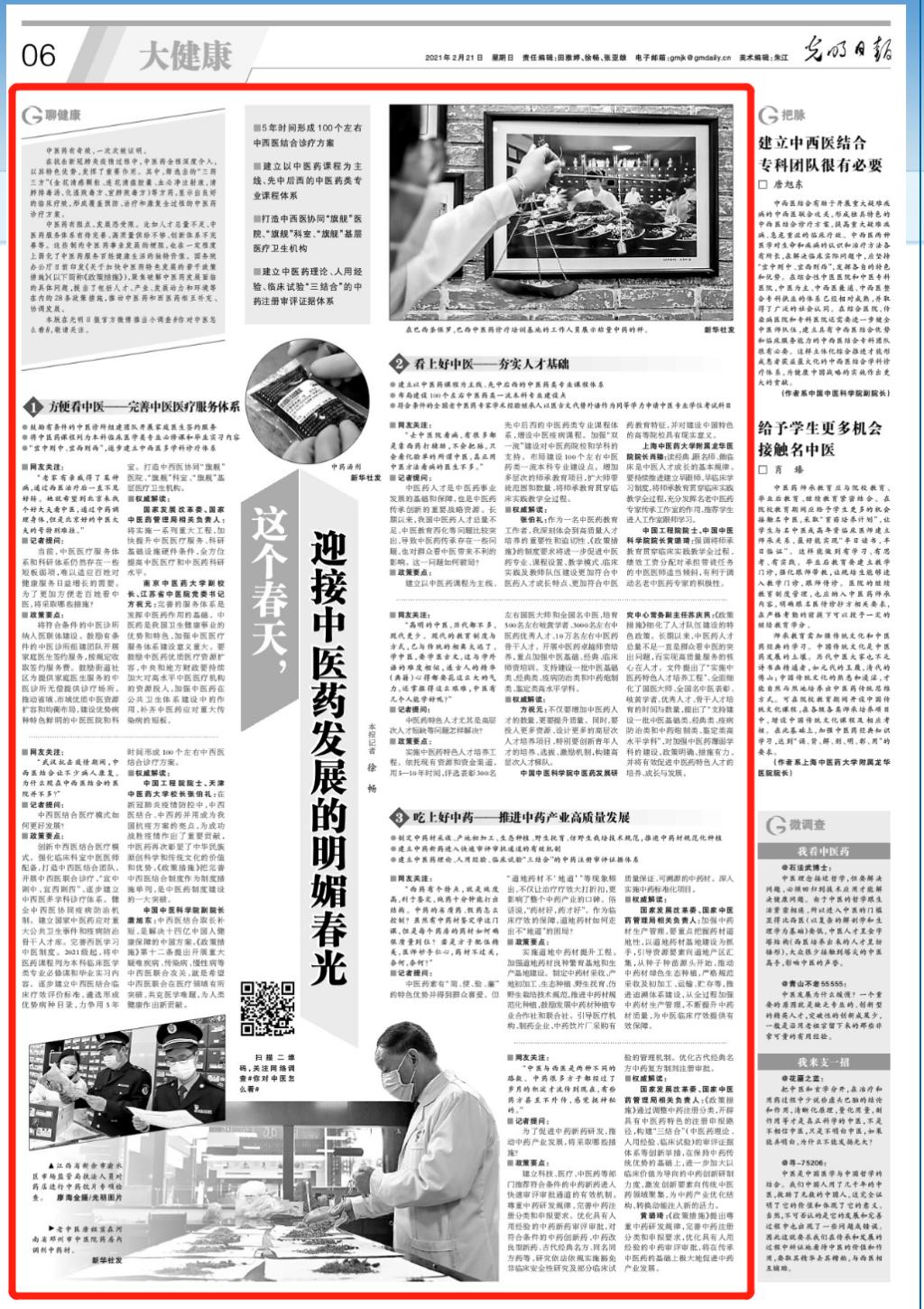 中国工程院院士、天津中医药大学校长张伯礼:在新冠肺炎疫情防控中,中西医结合、中西药并用成为我国抗疫方案的亮点,为成功战胜疫情作出了重要贡献,中医药再次彰显了中华民族原创科学和传统文化的价值和优势。《政策措施》把完善中西医结合制度作为制度措施单列,是中医药制度建设的一大突破。