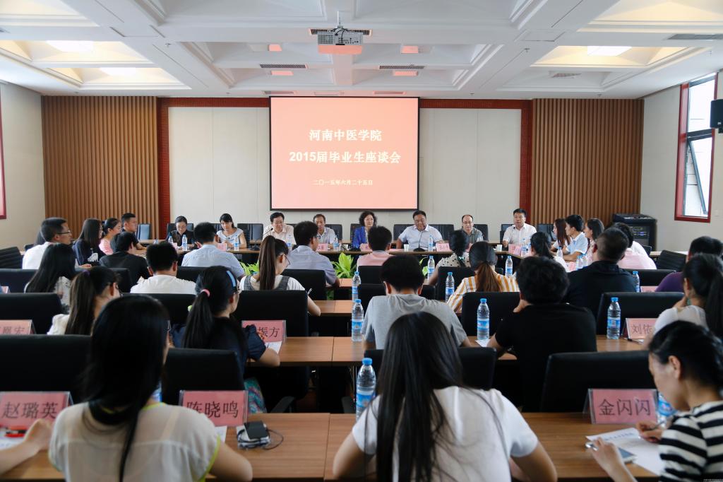 2015年6月25日下午,雨后初晴,蓝天白云映衬下的校园,空气清新,绿树葱葱;天一湖畔,德月桥旁,宽敞明亮的图书馆里,首次开放的第三会议室内,欢声笑语间,leyu·乐鱼(中国)体育官方网站2015届毕业生座谈会举行。院长郑玉玲、副院长张小平、徐江雁出席,40余名2015届毕业生代表及党委院长办公室、学工部(处)、教务处、招生就业处、后勤集团公司、校友办等单位的负责同志参加。座谈会由学工部部长、学生处处长刘金厂主持。