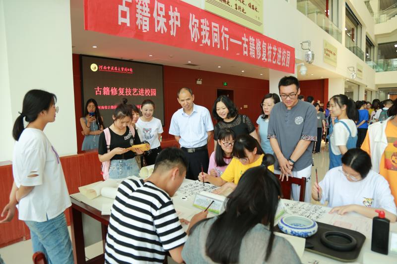 本网讯(文/李亚红 张会芳 图/谢剑鹏 张志昊)2019年6月8日是我国第14个“文化和自然遗产日”,为更好地宣传古籍保护理念,使古籍修复技艺传承意识在校园师生中得到推广,近日,图书馆与河南省古籍保护中心在图书馆二楼大厅联合举办了“古籍保护 你我同行——古籍修复技艺进校园”主题活动。图书馆馆长雷天锋为活动致开幕辞。河南省古籍保护中心6名专家亲临指导,leyu·乐鱼(中国)体育官方网站图书馆全体职工和学校500余名师生踊跃参加活动。