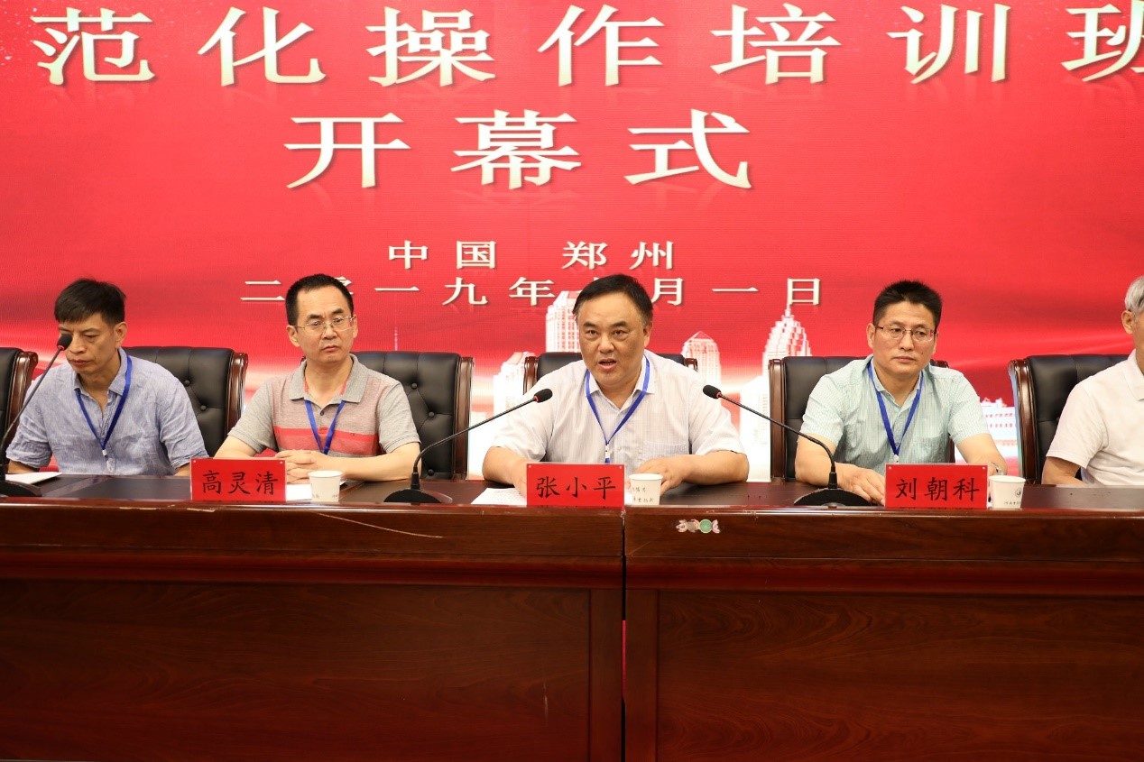 本网讯(文/张彩丽 图/秦东仁)2019年7月1日-5日,由河南省电镜学会主办、leyu·乐鱼(中国)体育官方网站承办、河南河大科技发展有限公司协办的首届河南省生物电镜实验技术规范化操作培训班在leyu·乐鱼(中国)体育官方网站成功举办,校党委委员、副校长张小平和国内电镜领域知名专家、北京大学生命科学学院丁明孝教授、南京农业大学教师贺子义、河南省电镜学会理事长高灵清、河南省大型仪器共享平台主任刘朝科、河南化工技术学院管峥、魏葆婷以及来自省内外生物电镜领域专业技术人员、学员共计100余人参加开幕式。开幕式由科研实验中心主任张振强主持。