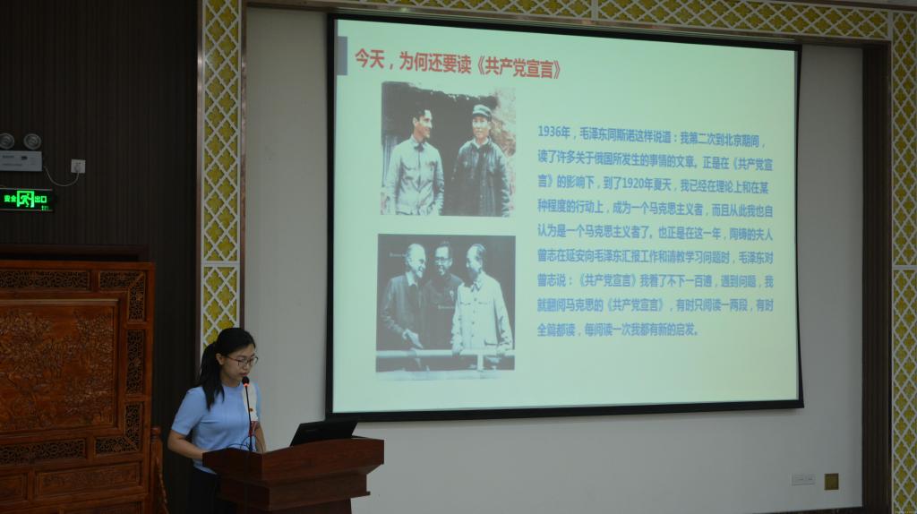 学生党总支代表韦妍在讲课中