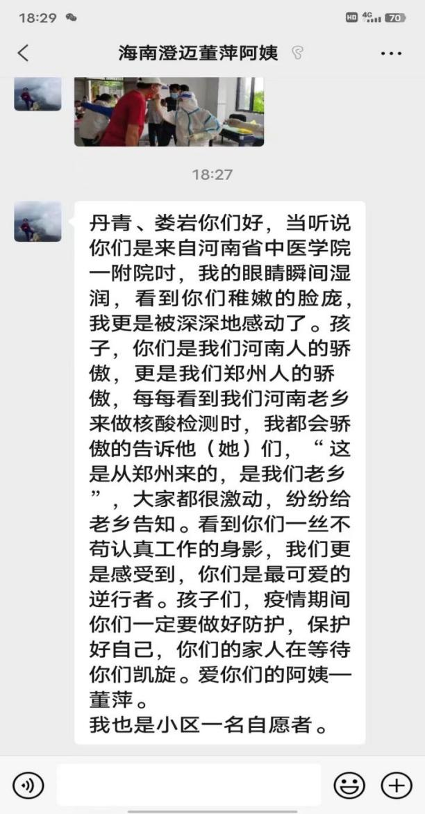 海口市澄迈县红树湾业主阿姨向一附院医疗队队员韩会发来感谢信,邀约疫情结束后再次前往红树湾欣赏美景!看海南的阳光更加明媚,更加灿烂!