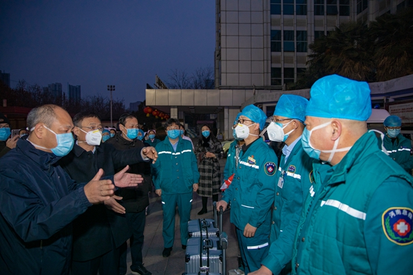 本网讯(文/廉万营 图/王东方 秦东仁)“报告领导,援鄂医疗转运队员准备完毕,请求出发!”“出发!”“是!”2月5日清晨,二附院李浩亮、刘杰、邵圣洁、代云祥等四位援鄂医疗转运队员紧急出发驰援武汉,到最前线抗击疫情。二附院党委书记王海亮、院长崔应麟、副书记张佩江、副院长胡仕祥及相关职能部门负责人为四位队员举行了简单的壮行仪式。