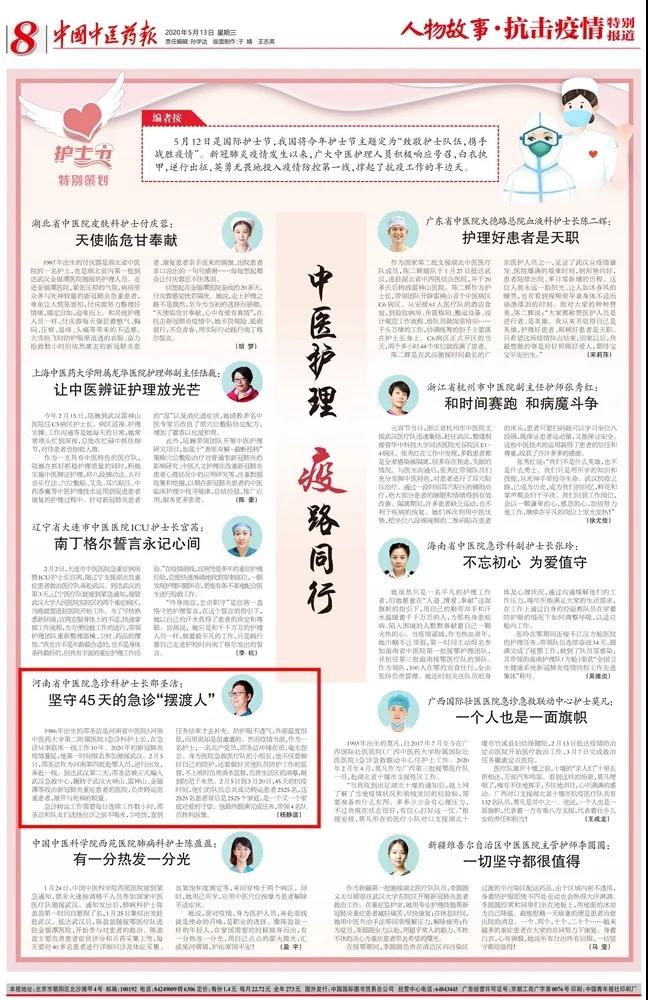 编者按:2020年5月13日,中国中医药报刊发题为《河南省中医院急诊科护士长邵圣洁:坚守45天的急诊“摆渡人”》的文章,讲述了二附院援鄂医疗急救转运队队员邵圣洁在一线与死神较量的点滴瞬间,现将全文刊发如下: