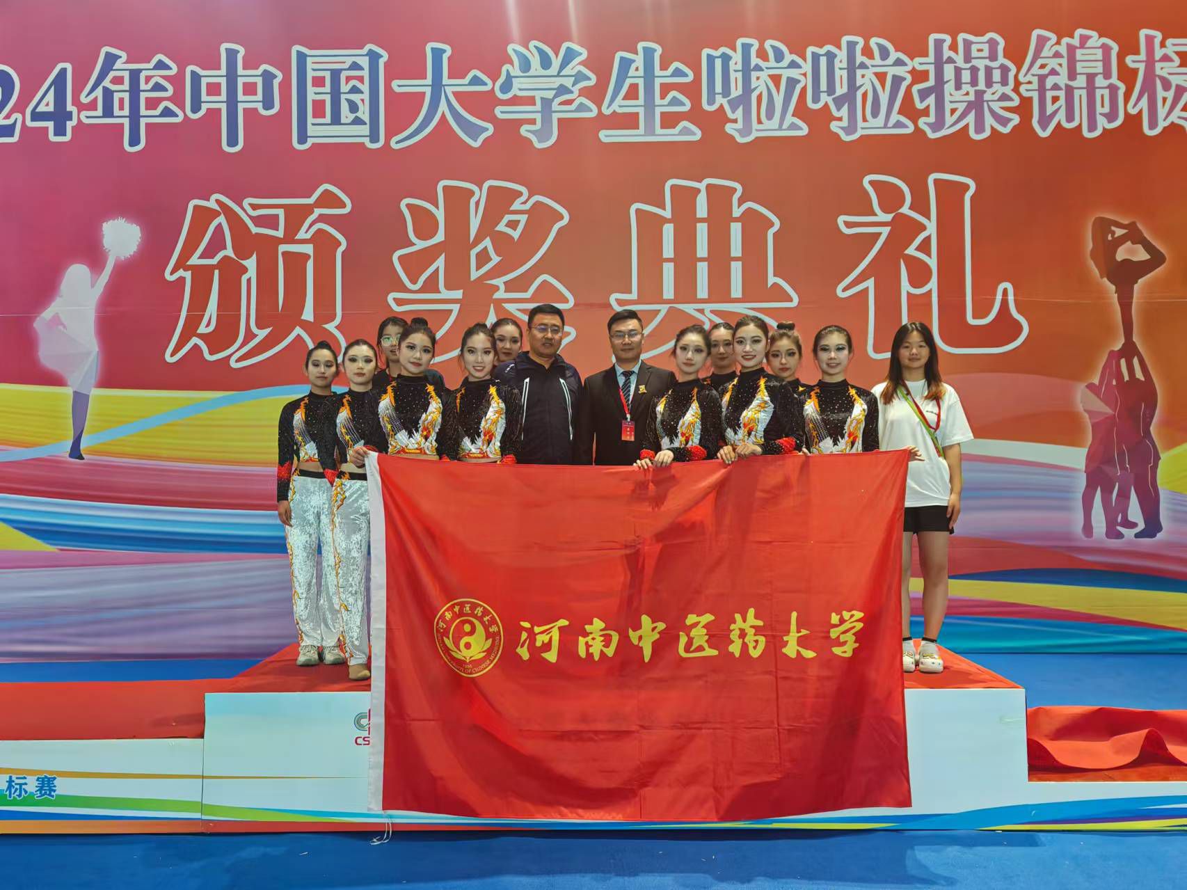 本网讯(文/图 关静涛)2024年11月14日-19日,由中国学生体育联合会主办的2024年中国大学生啦啦操锦标赛在海南省儋州市隆重举行。此次比赛汇聚了来自全国72所高校的1068名运动员参加,经过激烈比拼,leyu·乐鱼(中国)体育官方网站啦啦操队斩获甲组全女子技巧啦啦操规定动作冠军、甲组集体高踢腿自选动作冠军、甲组双人高踢腿自选动作季军及甲组双人爵士自选动作第八名,同时获得甲组团体总分第一名的优秀成绩。教练员关静涛获得“优秀教练员”称号。