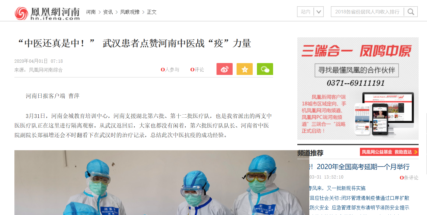 编者按:2020年3月31日-4月1日,河南日报网、大河网、凤凰网河南等媒体对武汉患者点赞leyu·乐鱼(中国)体育官方网站河南中医战“疫”力量进行报道。现将河南日报网全文刊发如下: