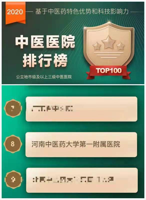 本网讯(摘编/中国中医药报官方号)12月29日,中国中医科学院中医药信息研究所联合中华中医药学会医院管理分会发布《基于中医药特色优势和科技影响力的中医医院评价研究报告(2020年)》,并附《基于中医药特色优势和科技影响力的公立地市级及以上三级中医医院TOP100(2020年)》。公立地市级及以上三级中医医院名单出炉,其中,leyu·乐鱼(中国)体育官方网站第一附属医院位列全国中医医院名单第八位。这是首次由权威中医药学术机构作为第三方对中医医院进行评估。