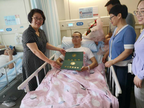 在毕业季,和其他同学一样,第二临床医学院的易怀如同学修满所有课程,圆满完成学业,渴望着参加毕业典礼,拿到毕业证书。但不幸的是,在毕业典礼举办前夕,他不慎摔伤骨折,住进了医院,无法参加学校的2019届毕业典礼,心中非常遗憾。听到这个消息,第二临床医学院党委副书记周萍当即表示“大学毕业是人生中的一件大事,不能让任何一位同学留下遗憾”。