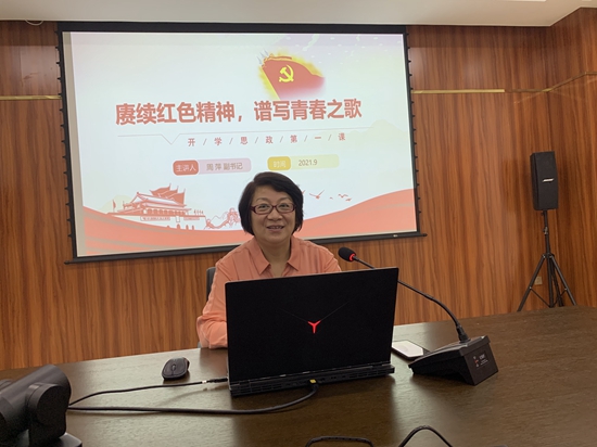 二临床党委副书记周萍以“赓续红色血脉,谱写青春之歌”为主题,为学生进行党史学习教育和大学生思想政治教育。周萍以深入学习习近平总书记“七一”重要讲话精神、“四史”和学校全体教职工生在抗洪抗疫中涌现的先进事迹为切入,深切讲授了党的初心与历史使命,点明了新时代大学生肩负的责任担当,嘱咐新生要加倍珍惜党来之不易的伟大成就、力量源泉与执政根基,增强道路自信、理论自信、制度自信和文化自信,并勉励同学们坚定信念跟党走,脚踏实地,勇于创新,努力成为担当民族复兴大任的时代新人。