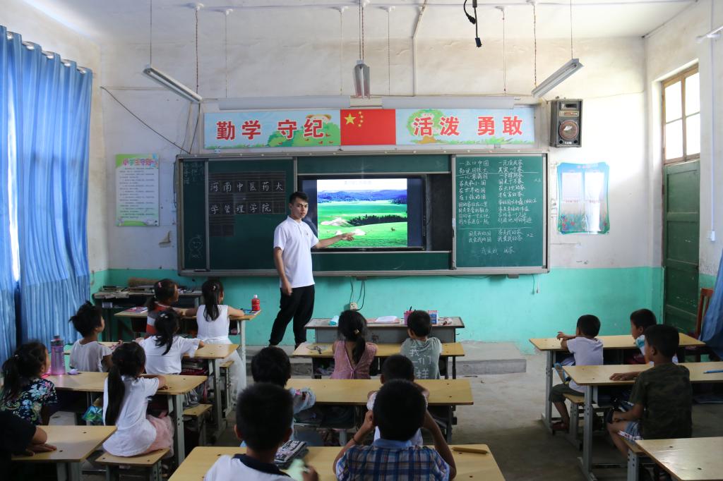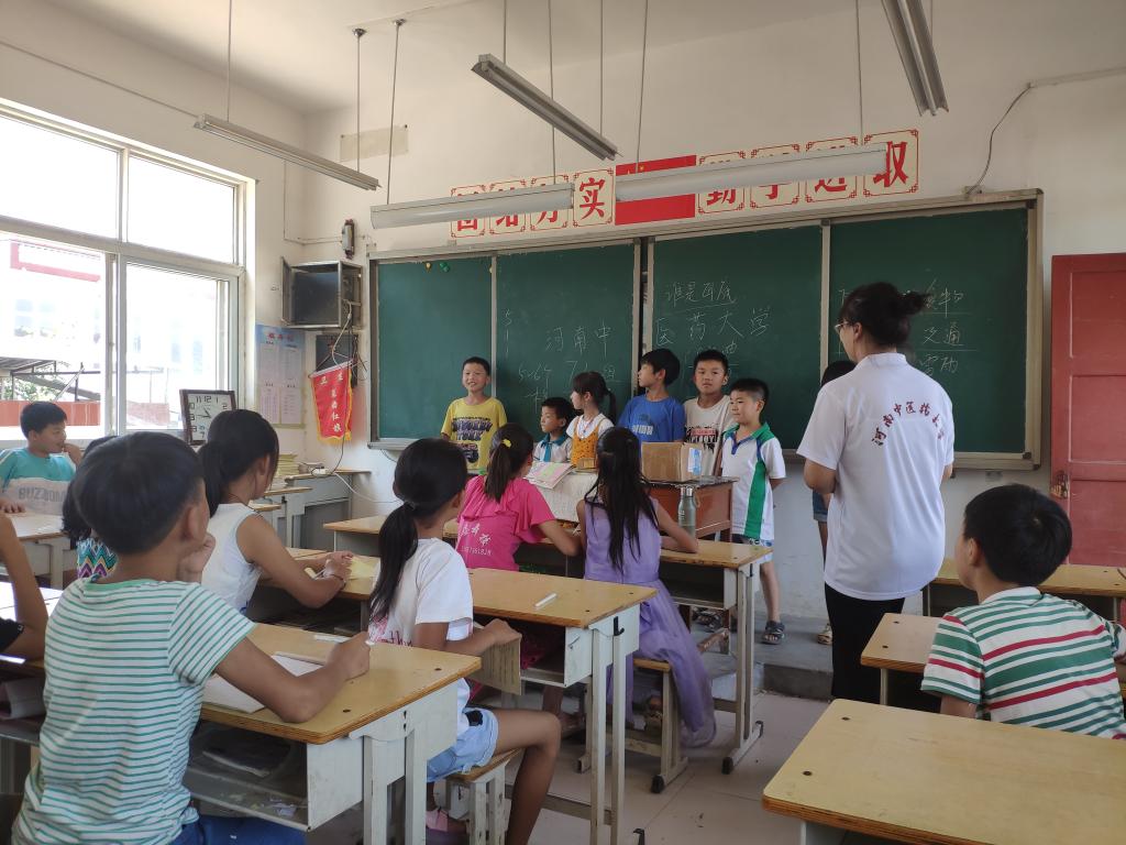 外语学院赴原阳教育关爱服务团为当地小学生开展爱国教育、安全教育、心理健康教育以及学业指导,引导孩子们树立正确的世界观、人生观、价值观。